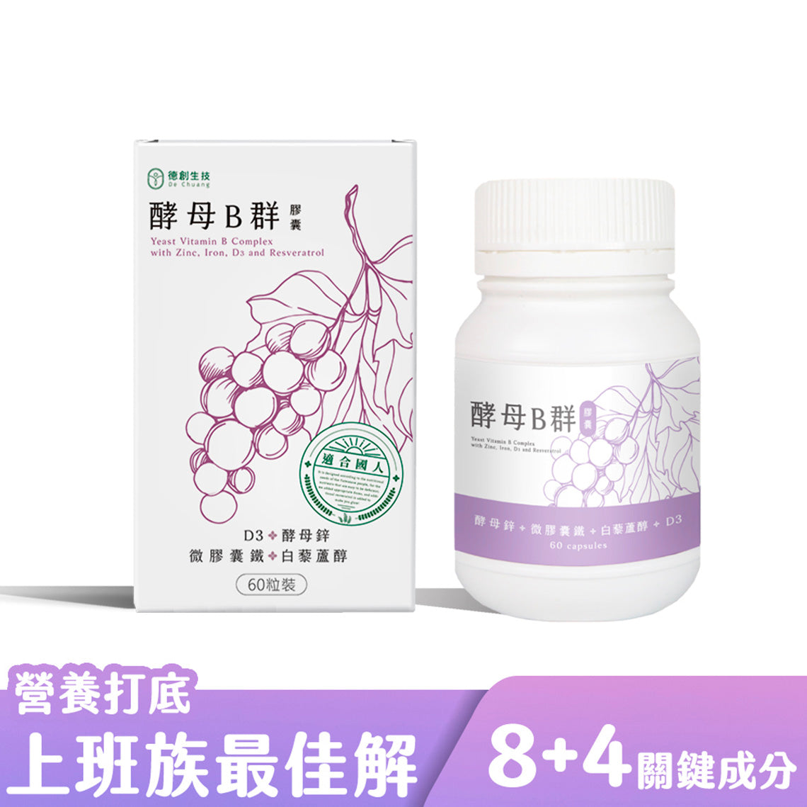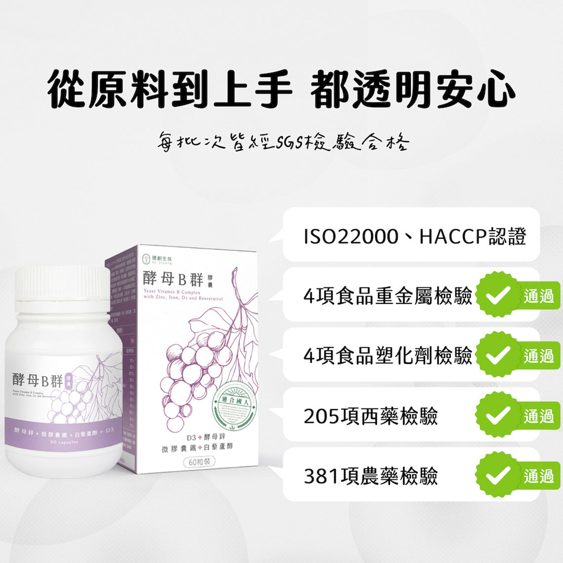 天然酵母B群,無臭味,特含白藜蘆醇、鐵、鋅、維生素D3,歐美專利原料製造,補足營養,增強活力,實現高效生活!